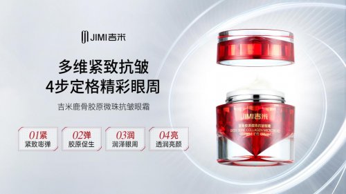眼周肌肤纤薄且缺乏油脂保护,是肌肤中最脆弱的部位之一,易出现皱纹,在寒冬尤其需要额外呵护。吉米鹿骨微珠抗皱眼霜,蕴含3D塑眼黑科技,能够紧致、透润、亮颜。3重冻龄胶原携手5重淡纹成分,同步淡眼纹、紧眼廓、褪眼圈,细致呵护眼周每一寸肌肤,全方位唤醒紧致明媚双眸。